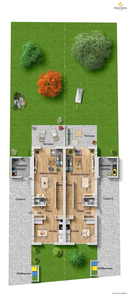 Keine zusätzliche Käuferprovision, Auftraggeber ist der Eigentümer. Alle Angaben sind nach bestem Wissen und Gewissen gemacht. Irrtum und Zwischenverkauf vorbehalten. Die Flörken & Schulz Immobilien GmbH haftet nicht für Irrtümer oder Schriftfehler. Sämtliche Informationen dieses Exposés basieren auf Informationen und Unterlagen, die uns durch den Eigentümer oder Dritten überlassen wurden und durch uns geprüft wurden. Im Vorfeld der konkreten Erwerbsüberlegung erhalten Sie sämtliche zu Grunde gelegten Unterlagen. Wir empfehlen die ausführliche Prüfung. Die in den Grundrissen eingezeichneten Möbel stellen lediglich ein Möblierungsbeispiel dar und sind nicht Teil dieses Angebotes, sofern nicht im Text "Ausstattung" ausdrücklich darauf hingewiesen wird. Aufgrund der am 25.05.2018 in Kraft getretenen Datenschutzgrundverordnung (DSGVO) bitten wir Sie, Ihre Anfrage zu dem Objekt ausschließlich über das Anfragefeld des Portals per E-Mail zu stellen. Sie helfen uns damit, unseren gesetzlichen Verpflichtungen nachzukommen.