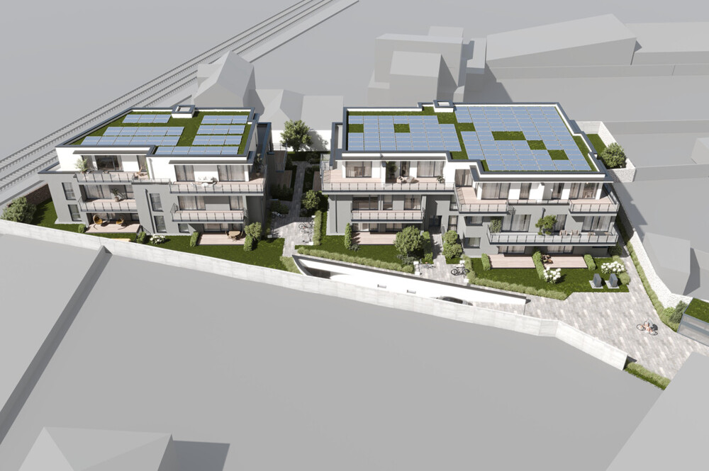 Mit „Connected Living Siegburg“ entsteht ein Neubauprojekt, das modernes Wohnen auf besondere Weise neu interpretiert. In zwei eleganten Baukörpern entstehen bis zum Frühjahr 2027 insgesamt 25 Eigentumswohnungen, die durch ihre durchdachte Architektur und hochwertige Ausstattung überzeugen. Die ersten Einheiten im vorderen Gebäude werden zum Dezember 2026 bezugsfertig. In der gemeinsamen Tiefgarage stehen 26 PKW-Stellplätze und ein großzügiger Fahrradkeller zur Verfügung. Weitere Fahrradabstellflächen sind unauffällig in die umgebenden Grünflächen integriert. Klare Linien, zeitlose Eleganz und die harmonische Einbettung in die gewachsene Umgebung machen das Projekt zu einem echten Blickfang. Besonderen Charme entfaltet die Lage: Direkt an der Bonner Straße – einer der wichtigen Verkehrsachsen Siegburgs – gelegen, profitieren die Bewohner von einer zentralen Anbindung. Gleichzeitig genießen sie dank der geschützten Innenblocklage eine ruhige, vom Verkehrslärm abgeschirmte Wohnatmosphäre im begrünten Innenhof – ein seltener Vorteil mitten in der Stadt. Die Wohnflächen zwischen ca. 59 m² und 115 m² bieten Lösungen für vielfältige Lebenssituationen, die den Anforderungen an modernes Wohnen gerecht werden: vom stilvollen 2-Zimmer-Appartment für Singles oder Paare über großzügige 3-Zimmer-Wohnungen bis hin zu familiengerechten 4-Zimmer-Einheiten. Alle Wohnungen zeichnen sich durch lichtdurchflutete, offene Grundrisse aus und verfügen über Balkone oder Terrassen – teilweise sogar mit eigenem Gartenanteil. So entstehen private Rückzugsorte mit Wohlfühlcharakter. Die barrierefreie Planung macht „Connected Living Siegburg“ zu einem Wohnprojekt mit Weitblick: Aufzüge verbinden alle Etagen mit der Tiefgarage, schwellenarme Übergänge und bodengleiche Duschen sorgen für Wohnkomfort. Damit ist das Projekt nicht nur für Menschen mit Mobilitätseinschränkungen ideal, sondern auch für alle, die Wert auf nachhaltige Wohnqualität legen.
